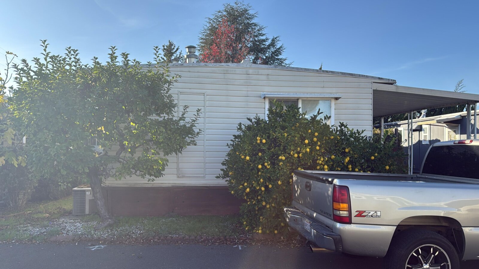 A classic manufactured house, 2 Bedrooms, 2 Baths, 1,000 Sqft with hardwood floors, a toolshed and a carport for 2 cars.