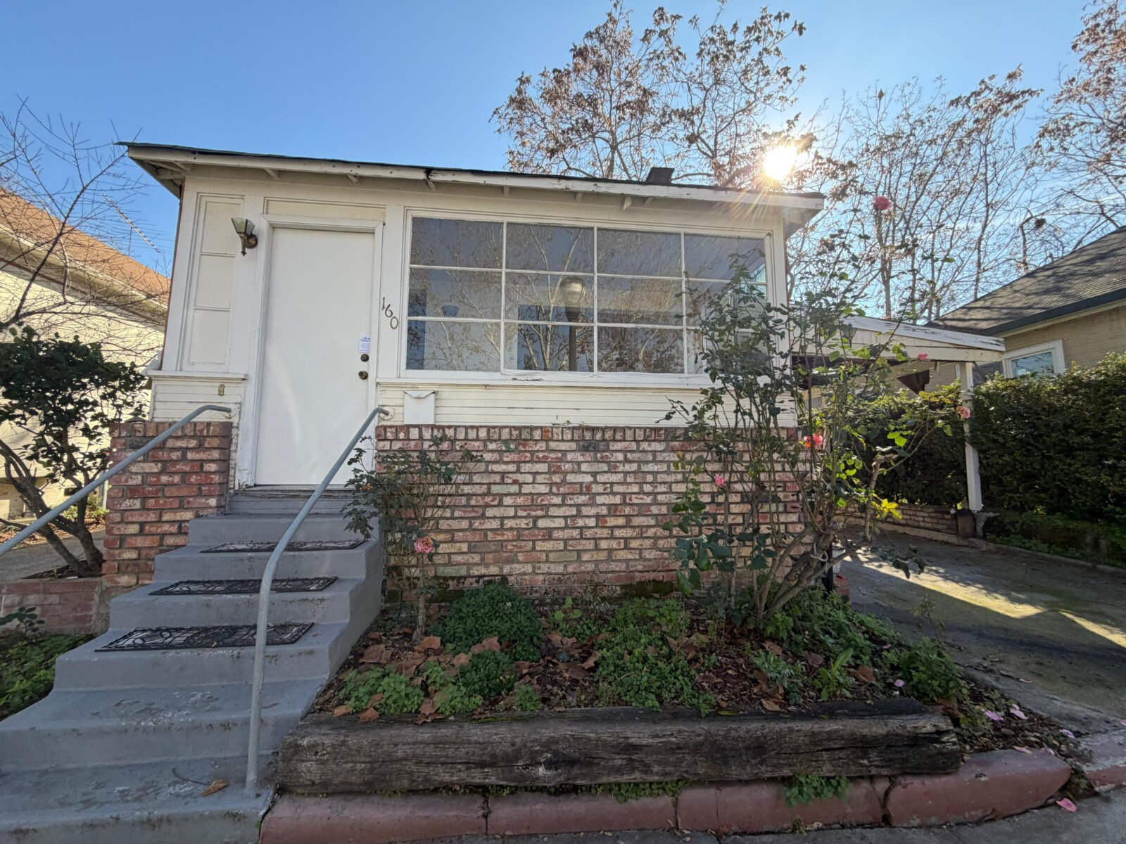 A classic single-family house, 1 Bedroom, 1 Bath, 736 Sqft with a fireplace and a carport.