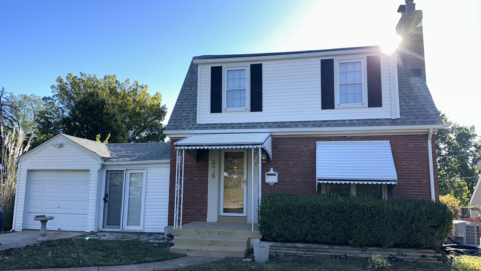 A classic 1.5-story single-family brick house, 3 Bedrooms, 1.5 Baths, 1,094 Sqft, with a full basement, a fireplace, hardwood floors and an attached garage.