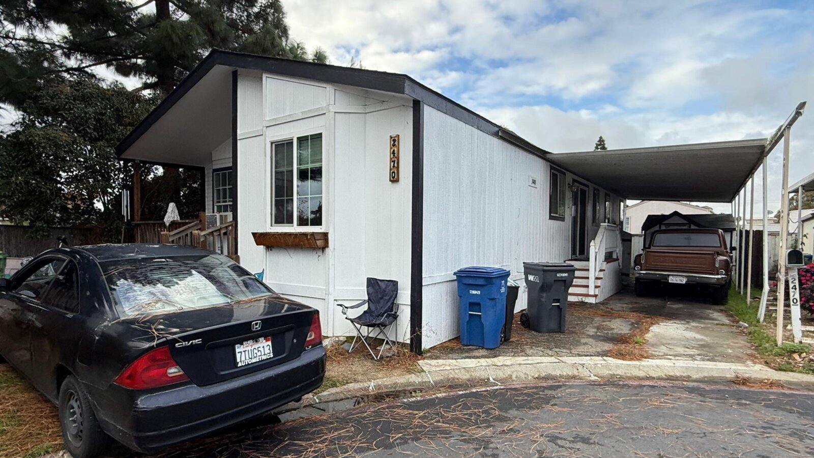 A classic manufactured house, 3 Bedrooms, 2 Baths, 1,344 Sqft with hardwood floors and a carport.