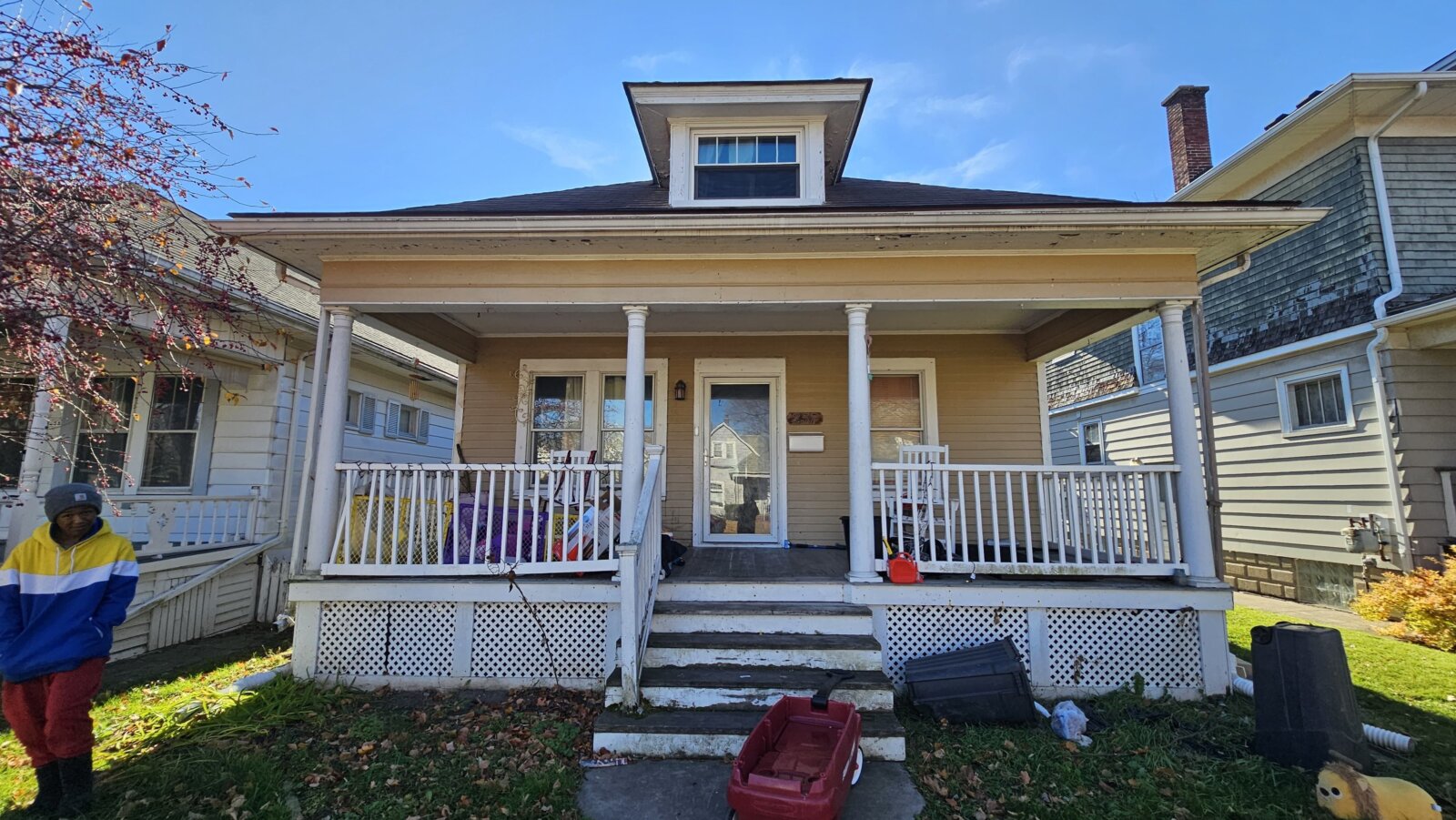 A classic 1.5-story single-family house, 3 Bedrooms, 1 Bath, 864 Sqft, with a full basement, hardwood floors and a detached garage.