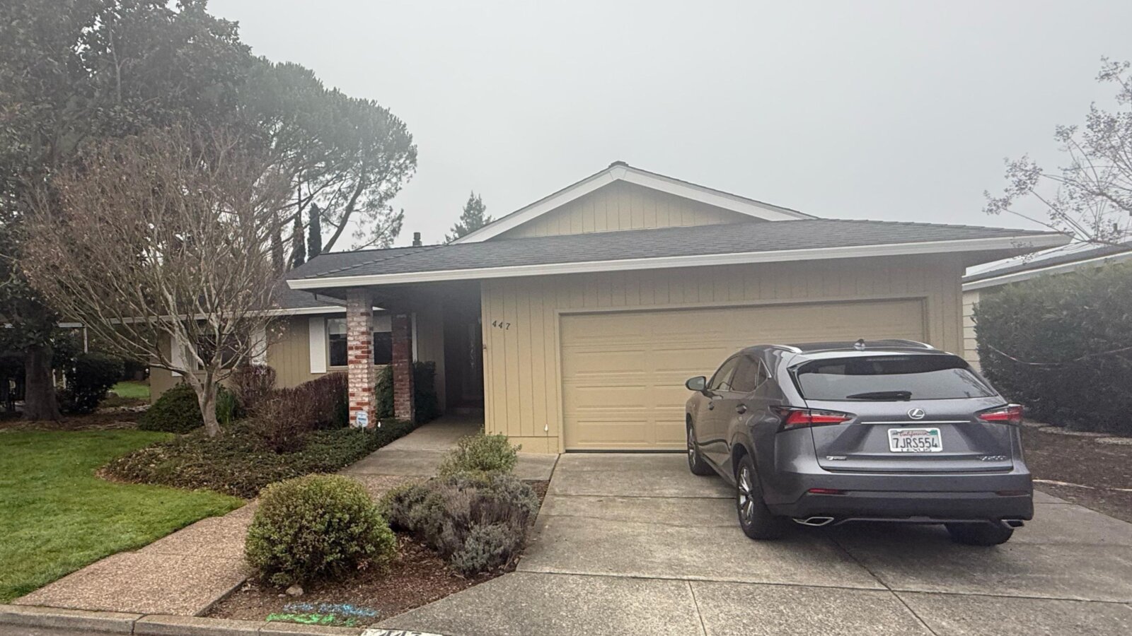 A classic single-family house, 3 Bedrooms, 2 Baths, 1,750 Sqft with a fireplace and a 2-car attached garage.