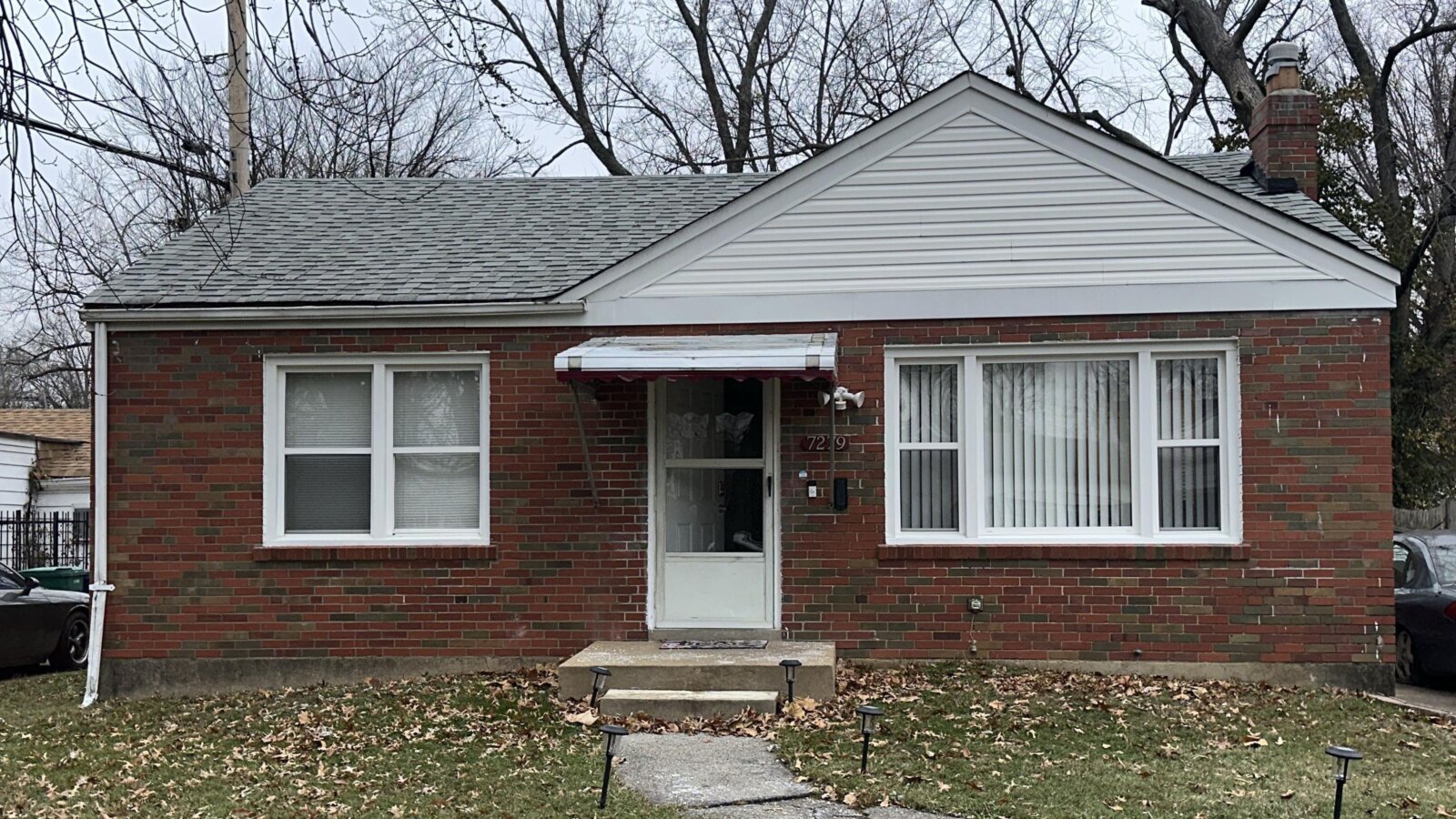 A classic single-family brick house, 2 Bedrooms, 1 Bath, 800 Sqft, with a full basement, hardwood floors and a detached garage.